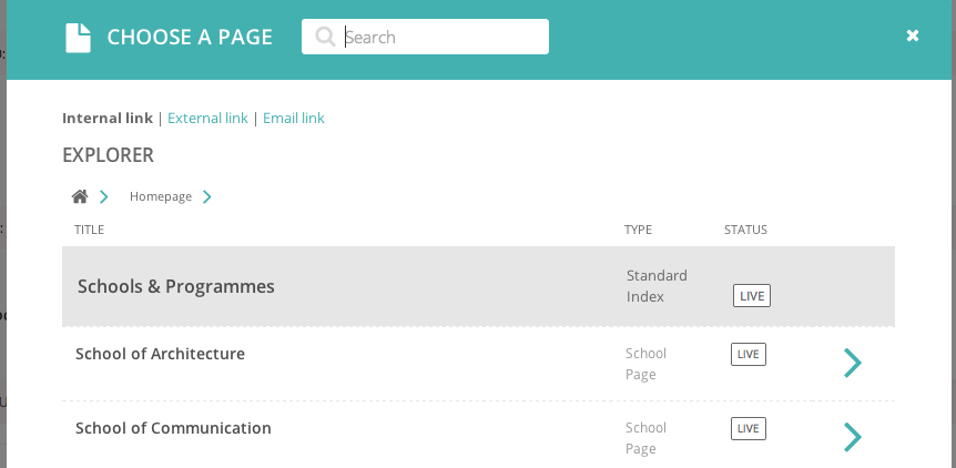 通过弹出选择框搜索已有页面,然后选择页面增加链接。